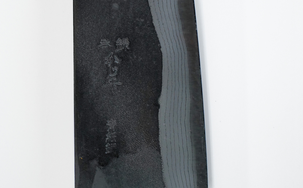 この包丁は、鋼に青紙鋼を使用しており、優れた切れ味と耐久性を実現しています。また積層材は異なる金属層の折り重なる事で波模様が現れ、美しいデザインをしております。