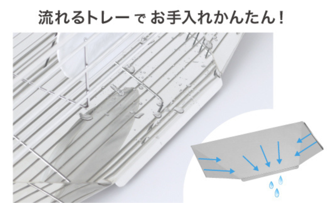 水受けトレーは水滴を中央に集めてシンクへ促す形状の流れるトレー「水が溜まったら捨てる」という作業を軽減してくれます。