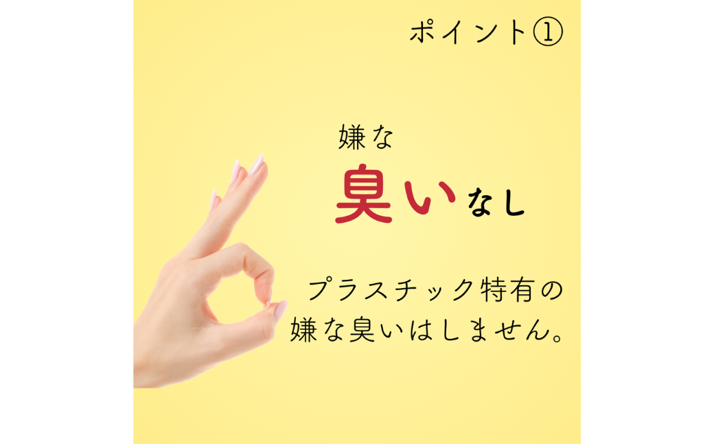 ・プラスチック特有のイヤなニオイのないバージンプラスチックを使用。