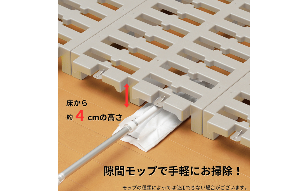 高さ(7cm)の脚高タイプなので通気性に優れ、簡易モップなどが入るのでお掃除も楽々。