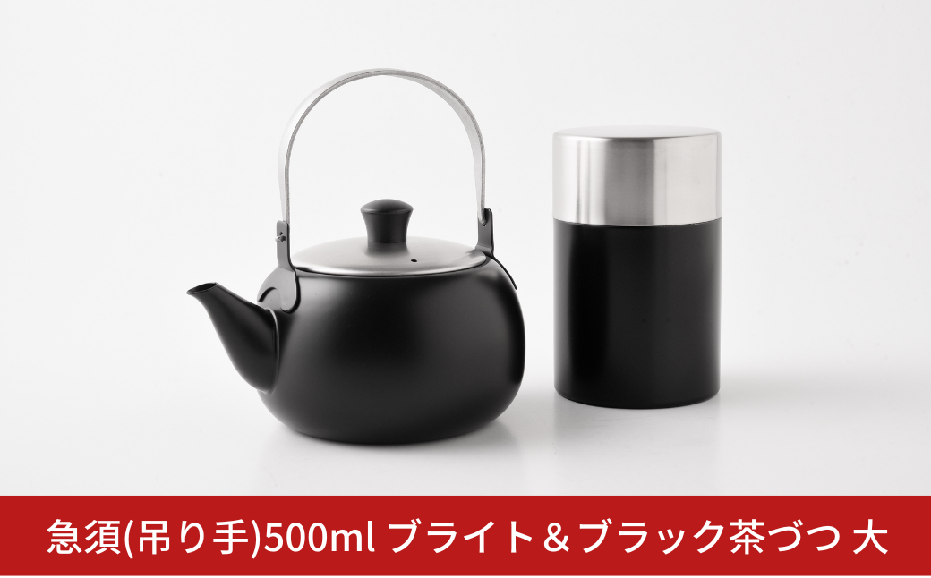 チョイスPayポイントと交換できる品 錆びにくく、衛生的で耐久に優れたステンレス製急須と茶づつのセット 急須(吊り手) 500ml ブライト & ブラック 茶づつ大 お茶 ステンレス製 アーネスト 燕三条製 キッチン用品 調理器具【019S091】