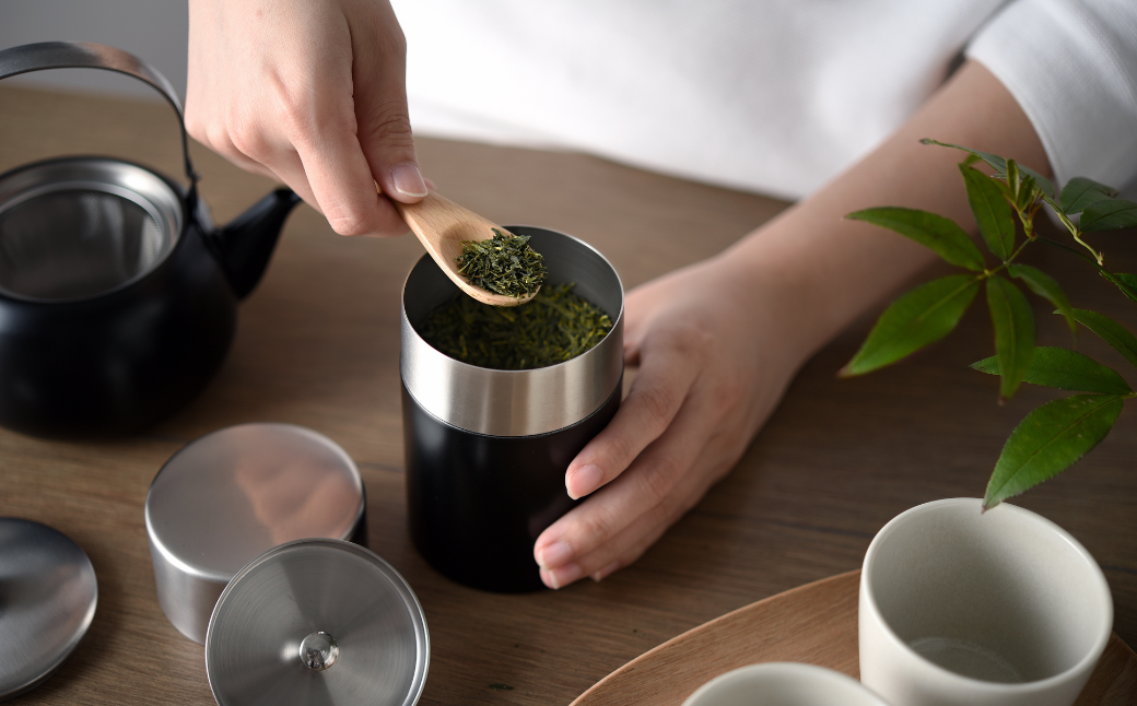 | 容量 | [サイズ] 急須:(約)奥行11cm×幅13.8cm×高さ9.1cm、14.2cm(吊る手伸ばした状態) 茶づつ:(約)奥行7.2cm×幅7.2cm×高さ11.3cm [重 量]急須:(約)254g、茶づつ:(約)195g [容 量]急須:(約)500ml、茶づつ:(約)350ml [材 質]急須:ステンレス鋼(黒色部アクリル樹脂塗装)、つる手:ステンレス鋼、茶づつ:ステンレス鋼(黒色部アクリル樹脂塗装) [付属品]茶こし |