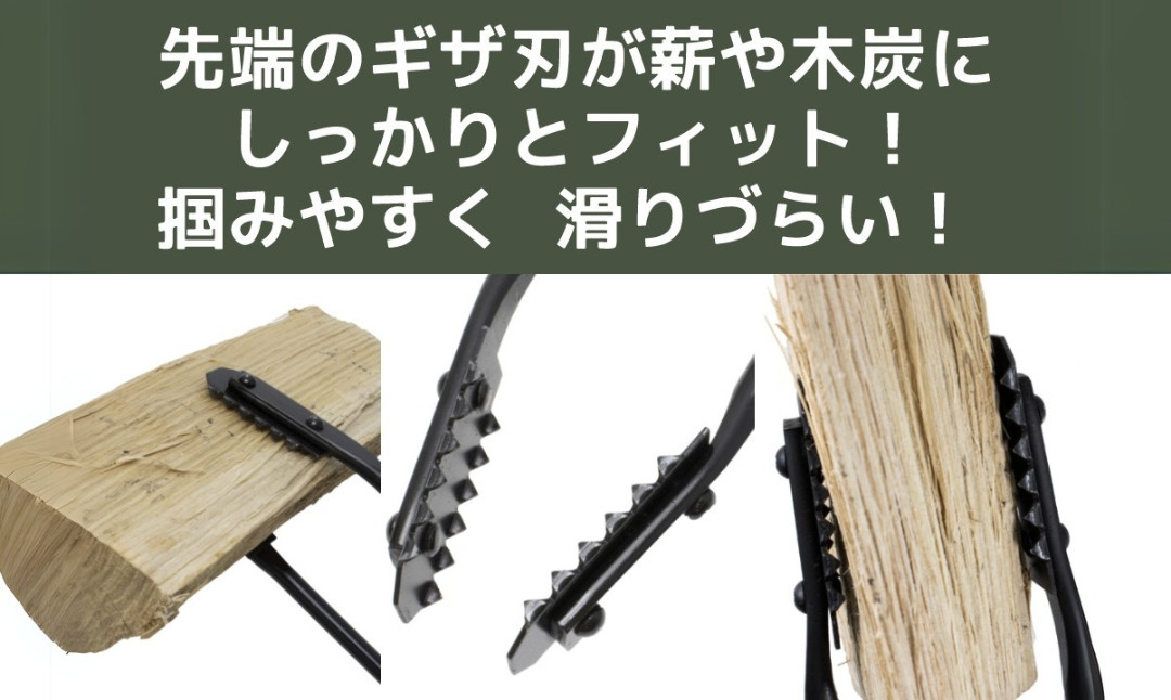・ギザ刃が薪や木炭にしっかりフィットするので、掴みやすく滑りづらい