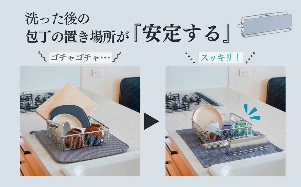 洗った後の包丁を乱雑に水切りかごに入れてしまうと不安定で困る事はありませんか?