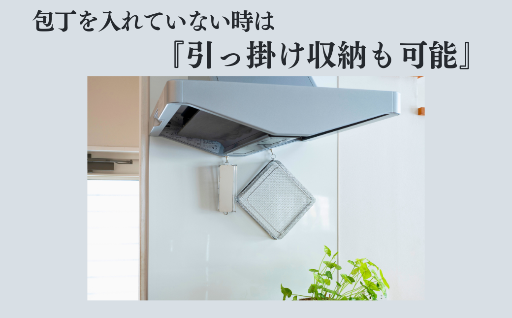 ・包丁を入れていない時は引っ掛け収納も可能です。