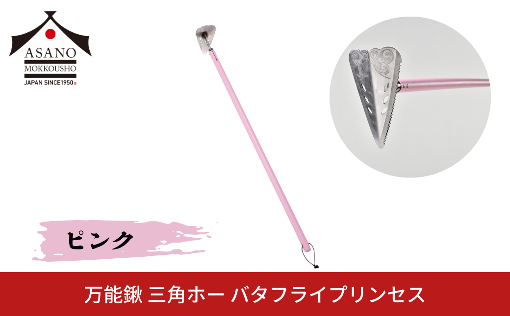 チョイスPayポイントと交換できる品 三角ホーが可愛いデザインに! 燕三条職人による手作業での刃付けで切れ味抜群! 万能鍬 三角ホー バタフライプリンセス ピンク 家庭菜園 農作業 燕三条製 [浅野木工所] 【014S106】