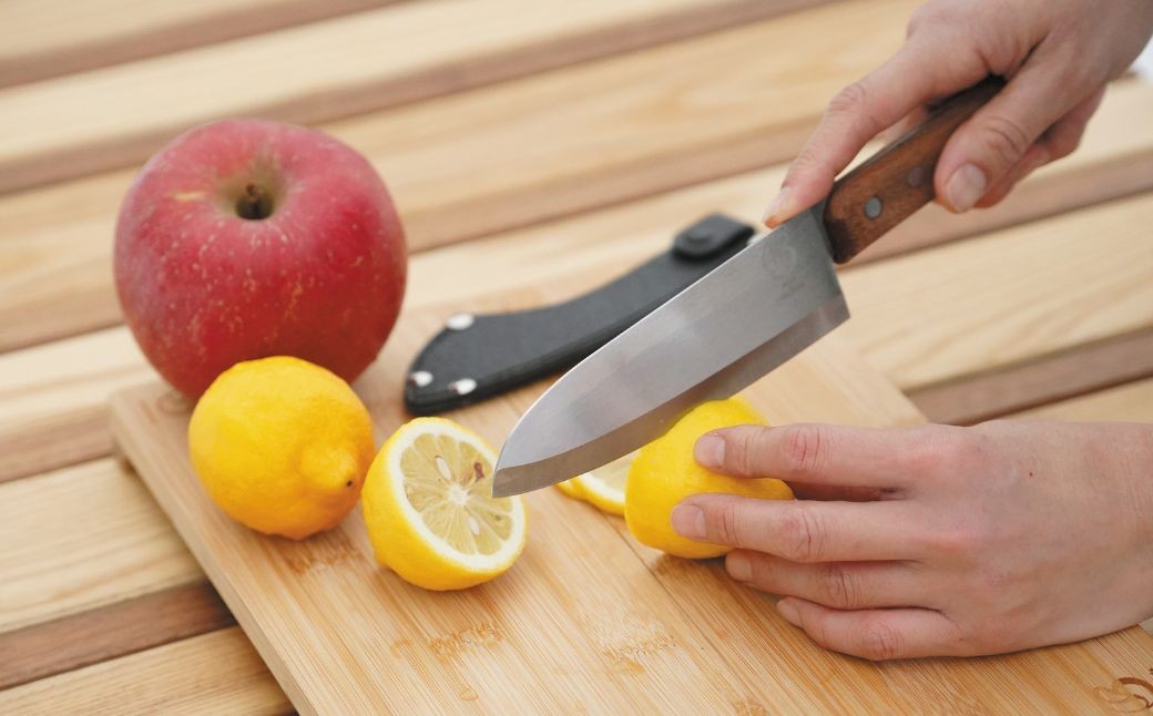 野外にも持って行きやすい、切れ味抜群の三徳包丁。