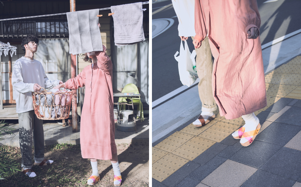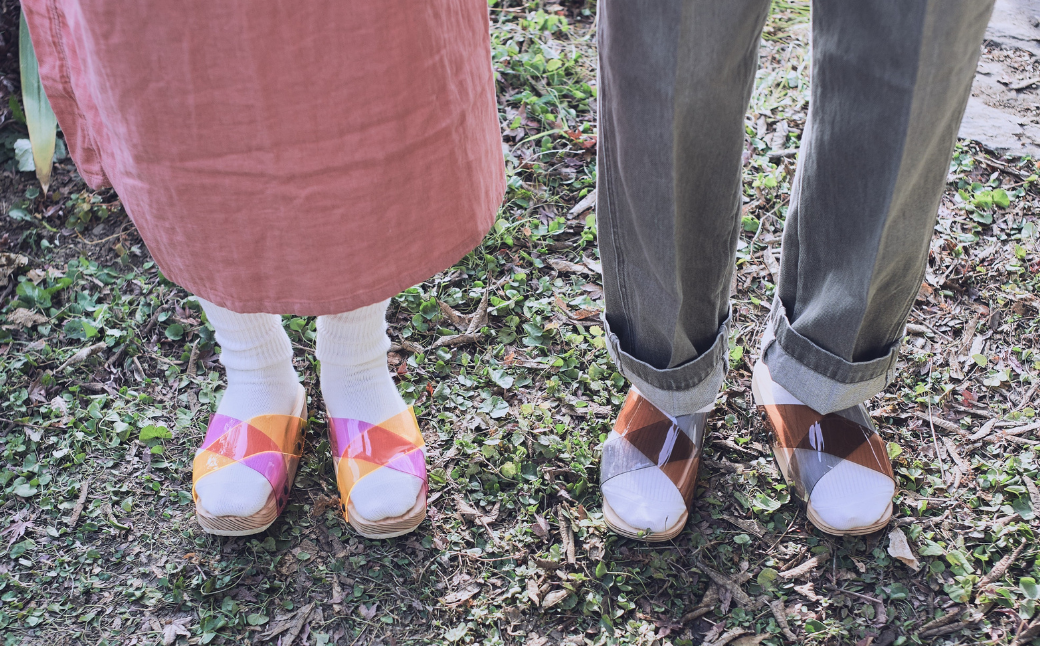 揃いのつっかけでお散歩すれば、気分もカラフル。