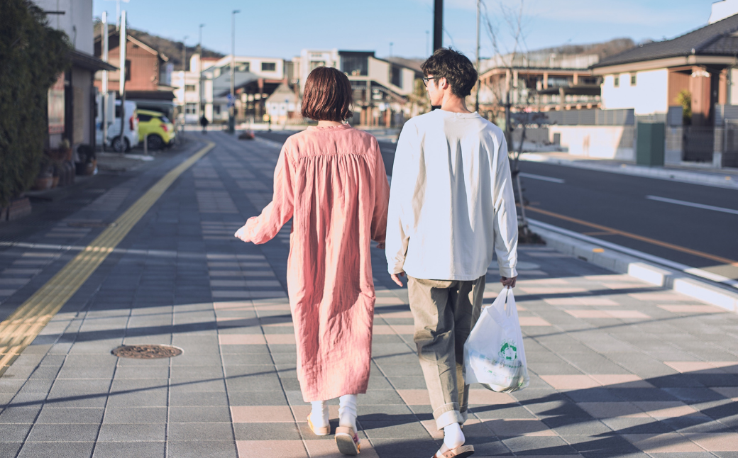 買いもの、ゴミ出し、洗濯物干し。 二人でカラコロ。気分もカラフル。