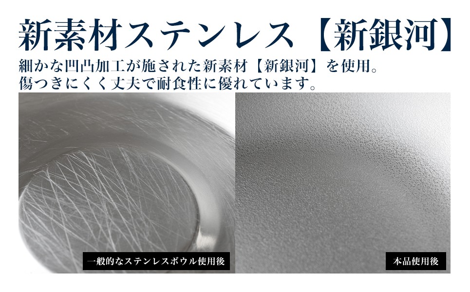 ボウルとプレートは細かな凹凸加工が施された新素材『新銀河』を使用。