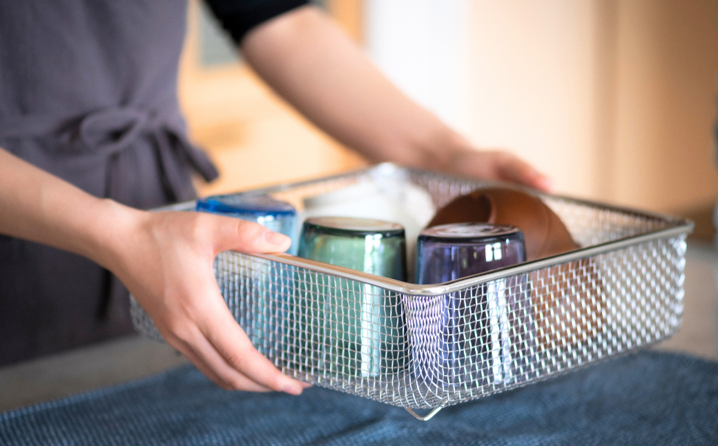 シンク周りがすっきり! シンプルな作りで、必要な時だけサッと取り出して使える水切りかご。