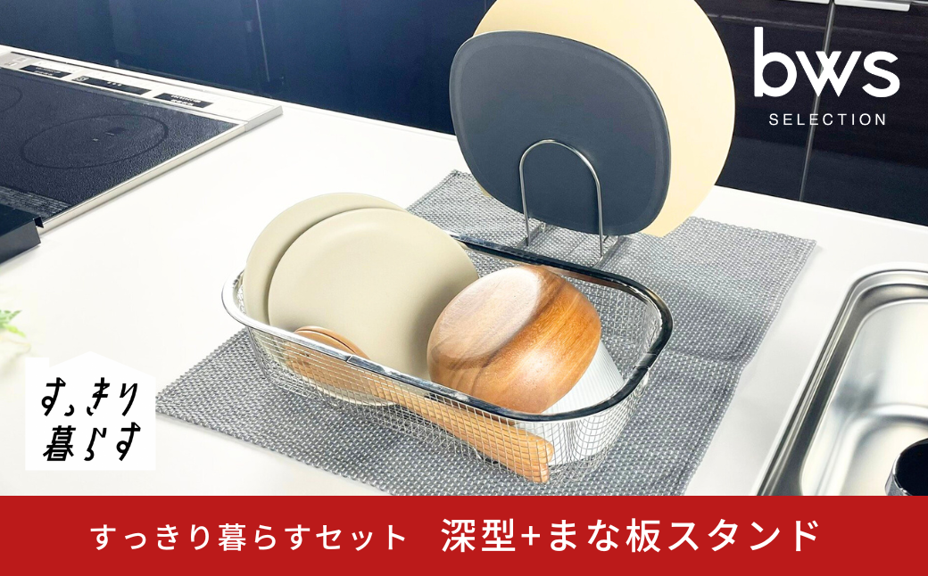 チョイスPayポイントと交換できる品 キッチン周りをすっきりさせてくれる「すっきり暮らすシリーズ」のセット すっきり暮らすセット(深型+まな板スタンド) 水切りかご 水切り ステンレス 食洗機対応 キッチン用品 bwsSELECTION [ビーワーススタイル] 燕三条製 省スペース 【012S150】
