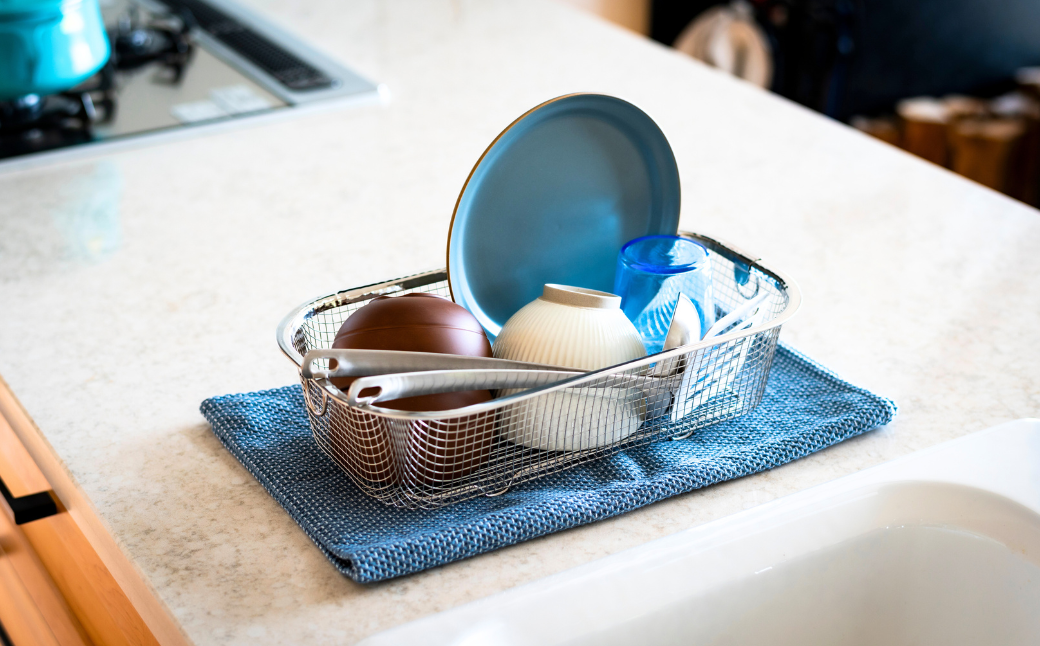 カゴの目が細かいので、お皿や小物などはもちろん、小さめの鍋などの水切りも可能。