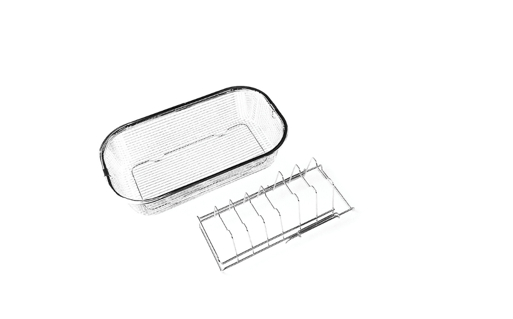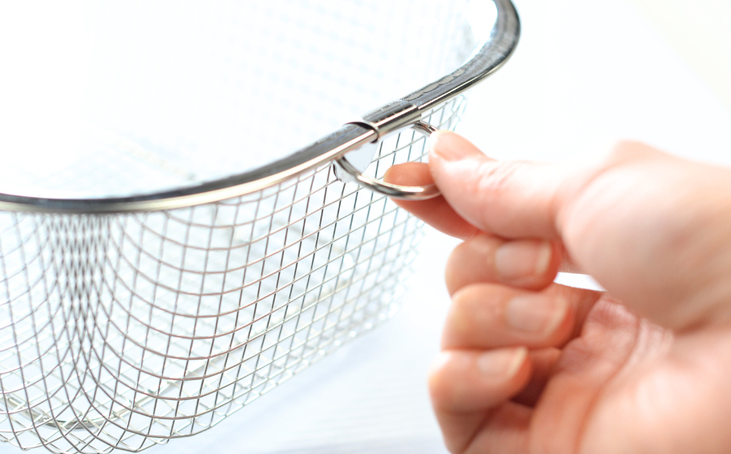 カゴの目が細かいので、お皿や小物などはもちろん、小さめの鍋などの水切りも可能。