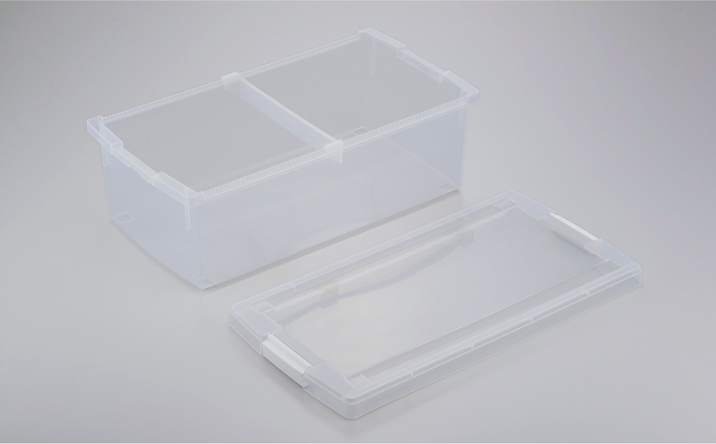 フタ付きなので中身をしっかりガードし、積み重ねもOK。