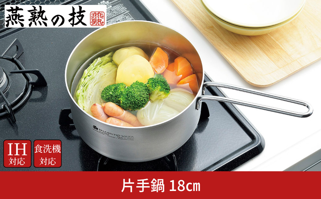 チョイスPayポイントと交換できる品 様々な熱源に対応した、軽量で扱いやすいステンレス片手鍋 片手鍋18cm 燕熟の技 ふた付き IH対応 食洗機対応 燕三条 日本製 【015S186】