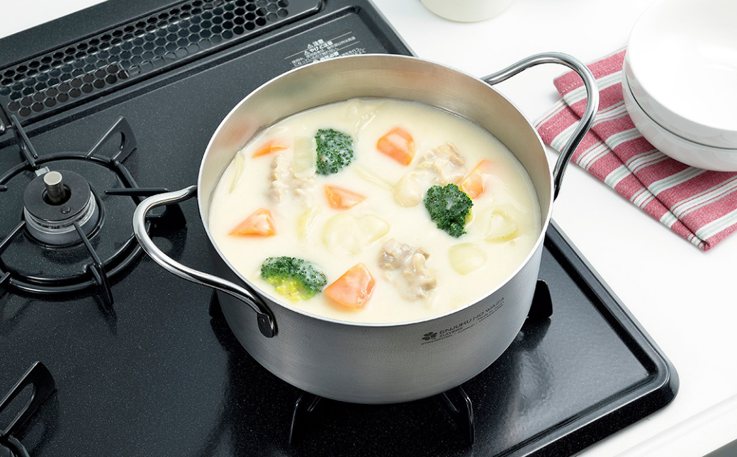 様々な熱源に対応した、軽量で扱いやすいステンレス両手鍋