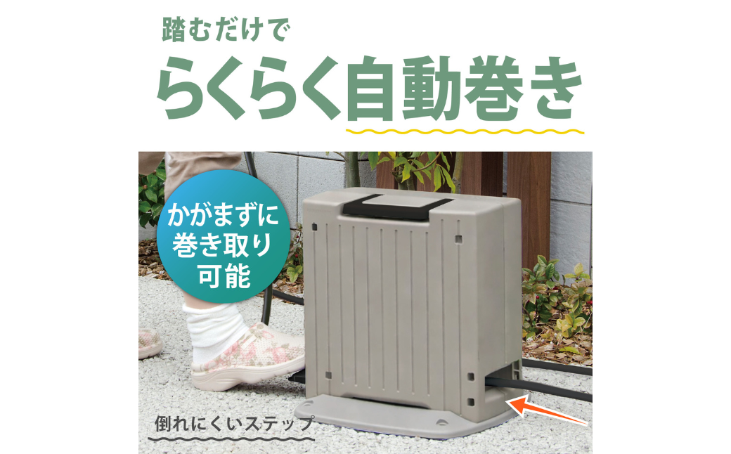 踏むだけでらくらく巻ける自動巻きホースリール!