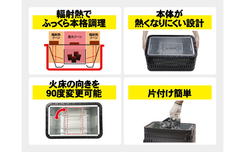 チョイスPayポイントと交換できる品 中心部は直火でカリッと、外側は輻射熱でじっくりと、焦がさずふっくら焼けます! 旨火シチリン 輻射焼き 七輪 マットブラック 国産 四角 角型 アウトドア キャンプ 本格調理 片付け簡単 UB-392(MBK) [グリーンライフ] 【017S164】