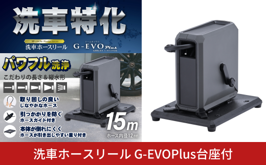 NEW 洗車ホースリール G-EVOPlus 台座付 15m ブラック×アッシュグレ…
