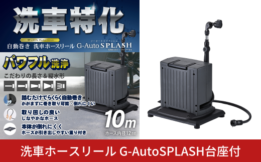 NEW 洗車ホースリール G-AutoSPLASH 台座付 10m ブラック×アッシュ…