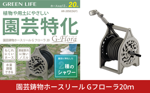 NEW 園芸鋳物ホースリール Gフローラ 20m サンドグレー 園芸特化 …
