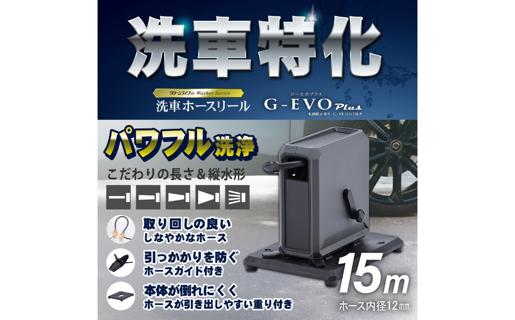 NEW 洗車ホースリール G-EVOPlus 台座付 15m ブラック×アッシュグレ…