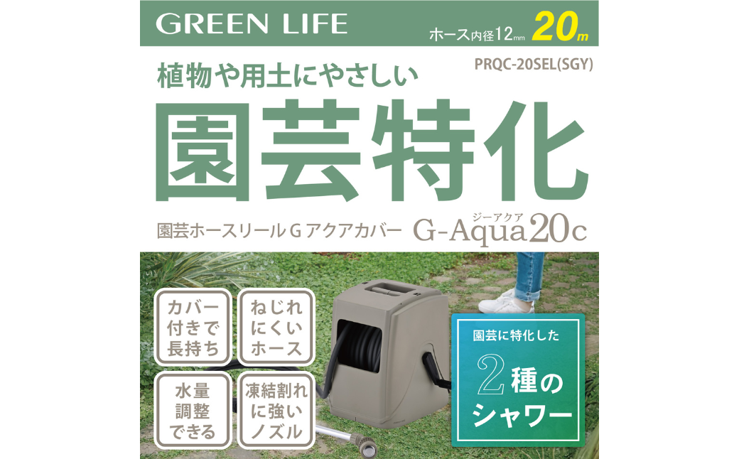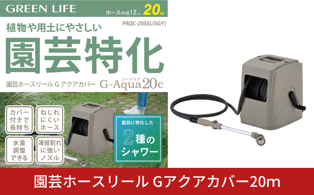 チョイスPayポイントと交換できる品 ロングノズルで株元に差し込みやすい、園芸に特化したカバー付きホースリール 園芸ホースリール Gアクアカバー 20m カバー付き サンドグレー 園芸特化 水撒き 水やり ガーデニング 園芸 ホースリール 水形2種 PRQC-20SEL(SGY) [グリーンライフ] 【017S165】