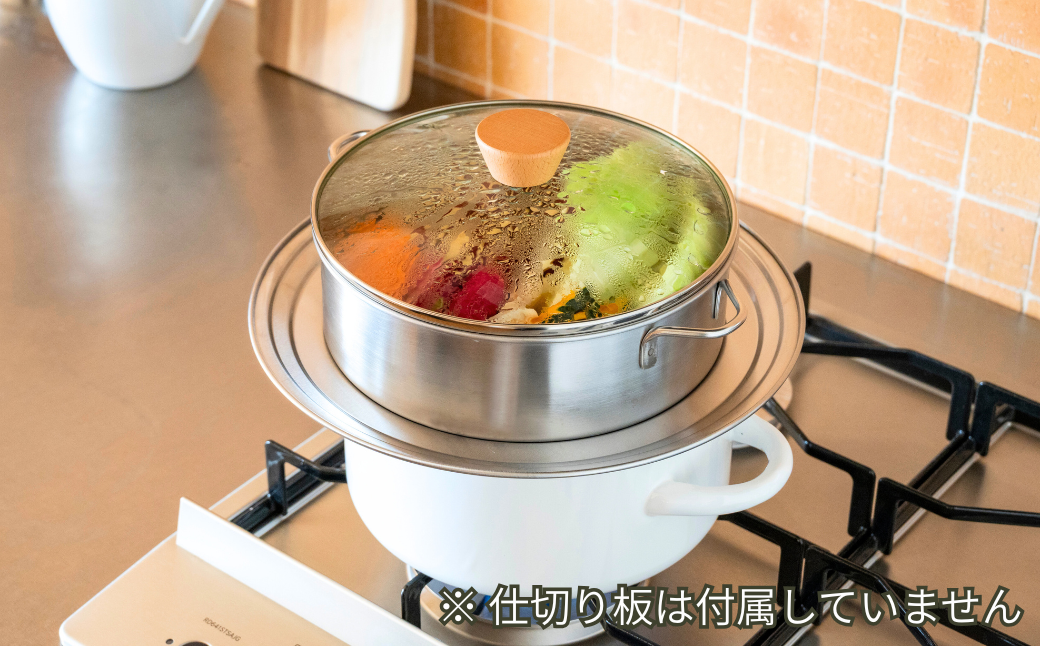 NEW すっきり暮らす ステンレス せいろ 深型 仕切あり 21cm食洗機対…