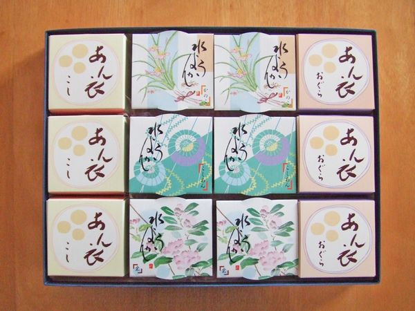 | 容量 | ・水ようかん こしあん:80g×2個 ・水ようかん かのこ:80g×2個 ・水ようかん 栗:80g×2個 ・あん衣 こし:95g×3個 ・あん衣 おぐら:95g×3個 |