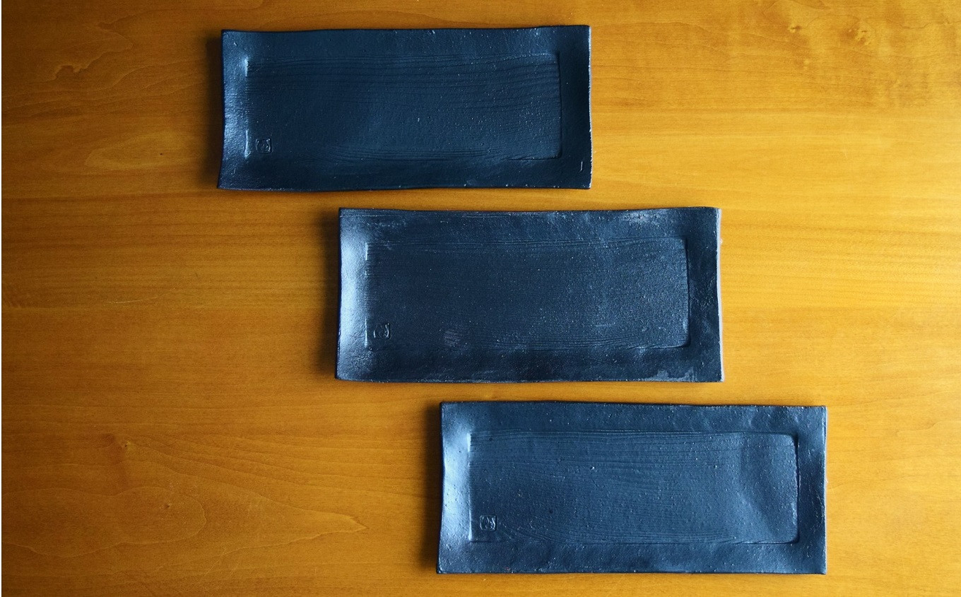 明城焼 恒炎窯 黒マット長角皿 3枚セット[ZB594]