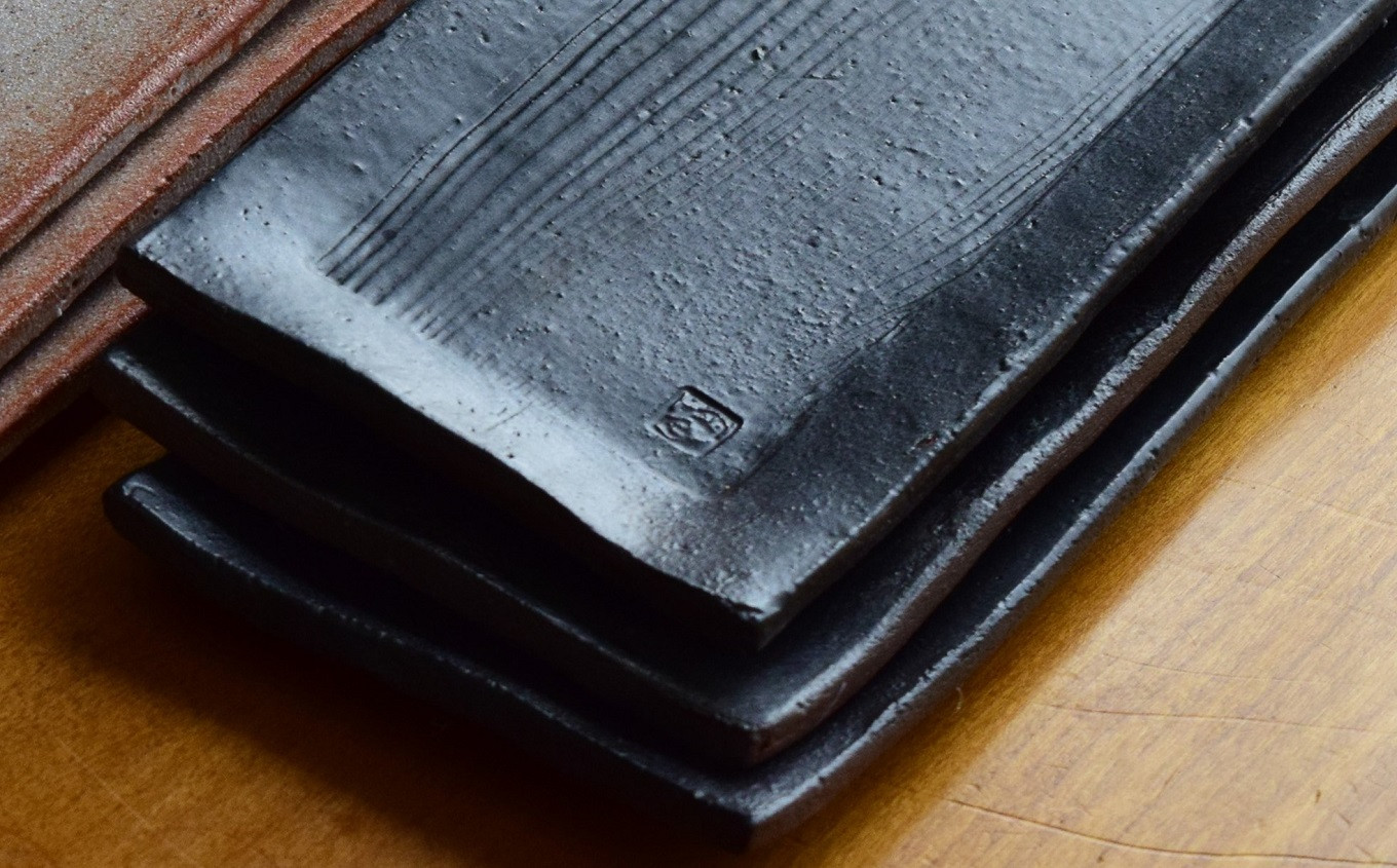 明城焼 恒炎窯 焼締長角皿 3枚セット[ZB593]