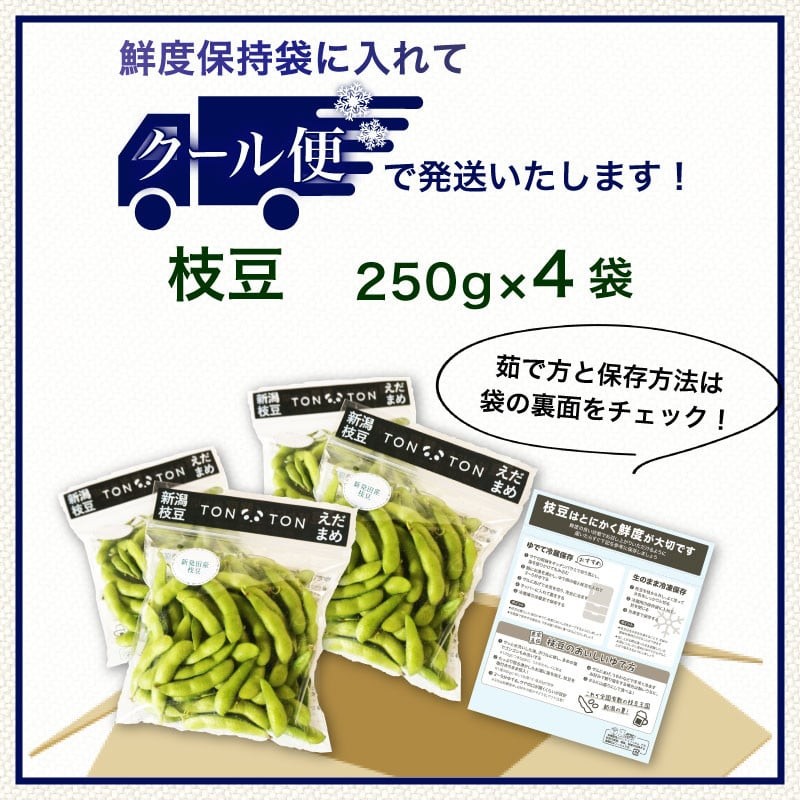16年連続、消費量日本一。夏といえば、枝豆。枝豆といえば、新潟。 季節の枝豆 1kg 250g 4袋 枝豆 えだまめ まめ 野菜 おつまみ 茶豆 ずんだ ずんだもち 豆 数量限定 季節限定 キャンプ 産地直送 とんとん市場 株式会社せいだ 新潟県 新発田市 seida033