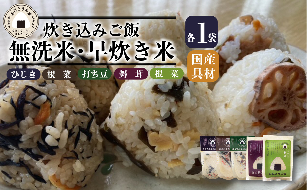 無洗米 お米 5個 コシヒカリ 炊き込みご飯 オニギリ おこめ お米 米 ご飯 ごはん 人気ご飯 無添加 健康 自然 安心 おすすめ キャンプ アウトドア 簡単 長期 保存 保存食 備蓄食 防災 年末 年始 ギフト プレゼント 関川産業 新潟県 新発田市 J14_01