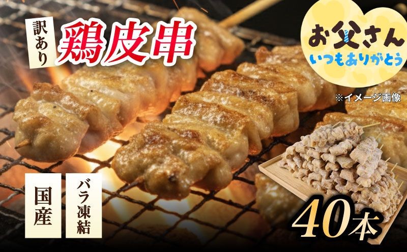 地域の生産者応援の品 サクッと香ばしく、噛むほどに広がる旨味 訳あり 焼き鳥 鳥皮 40本 皮 やきとり 国産 鶏肉 とりかわ 皮 鶏皮 串 串焼き おつまみ BBQ バーベキュー アウトドア 冷凍 母の日 父の日 サトウフーズ 新潟県 新発田市 satofoods002