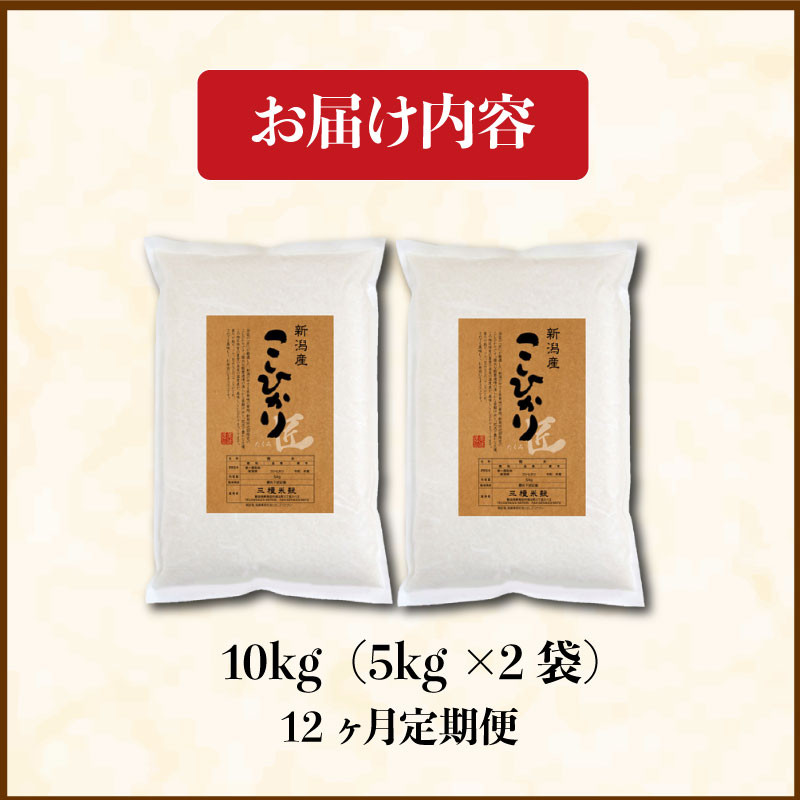 真空パックで新鮮さ長持ち! 【定期便】新潟県産 米 コシヒカリ 真空パック 10kg 12ヶ月(5kg × 2袋) 新発田産 備蓄 非常 防災 長期保存 アウトドア こしひかり 令和6年産 新潟県 新発田市 三糧 こめ 定期便 sanryo005