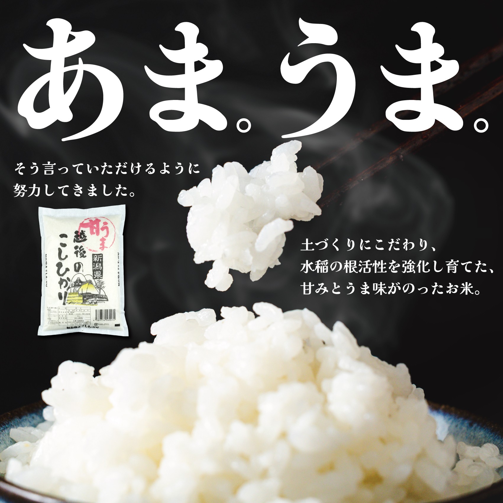 甘みとうま味が乗ったお米を「甘うま 越後のこしひかり」としてパッケージしました。