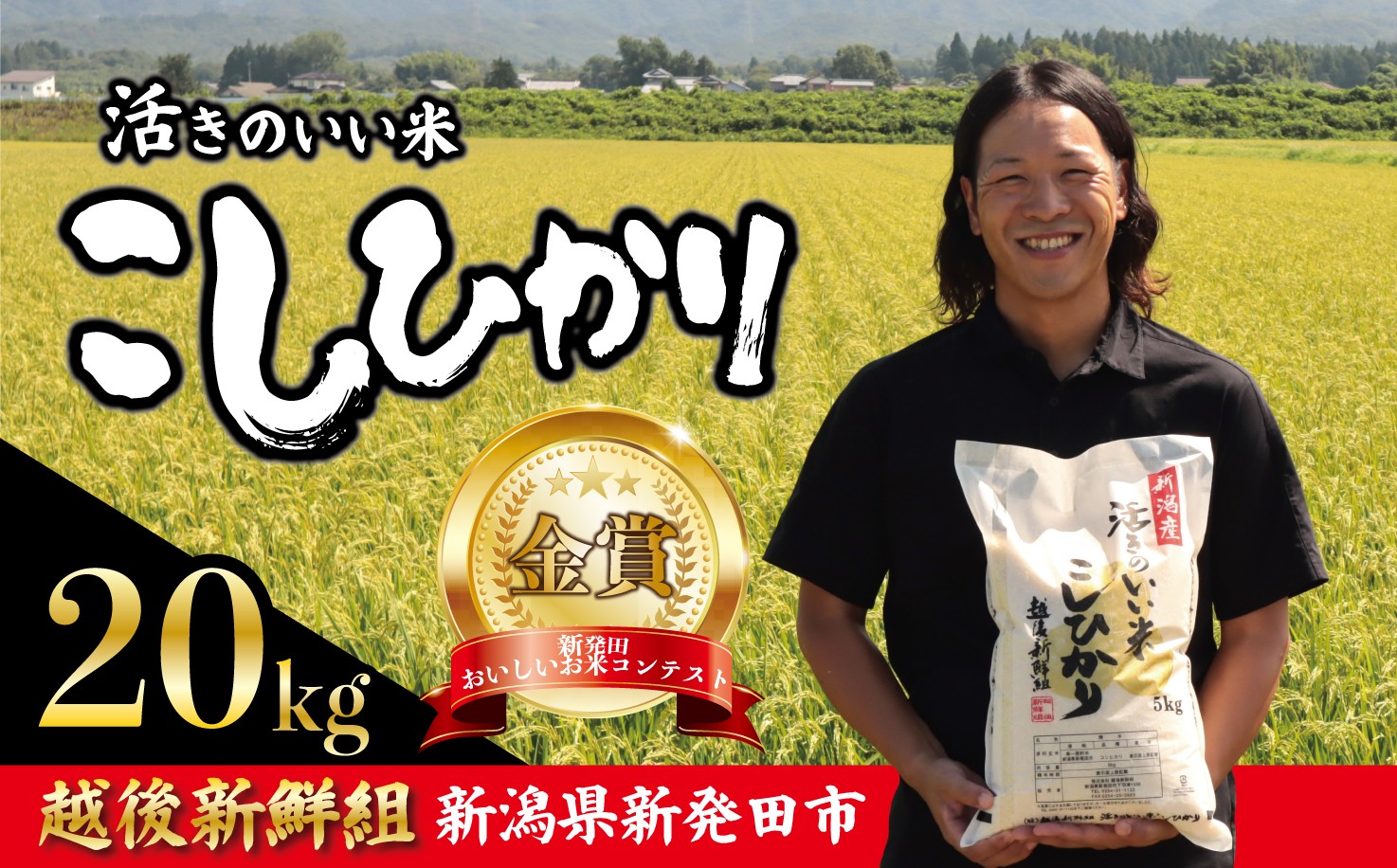 【命懸けの米づくり】噛めば噛むほどわかる極上のコシヒカリ 【2025年10月以降発送】令和7年産 コシヒカリ 20kg こしひかり 精米 白米 ご飯 おにぎり 弁当 新潟県産 新発田産 新潟 米 お米 こめ 受賞 越後新鮮組 新潟県 米 新潟県 新発田市 shinsengumi003_202510