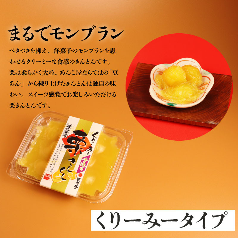 「くりーみー栗きんとん」の美味しさはそのままに、もっと体に優しい栗きんとんが作りたいとの思いで開発した栗きんとんです。