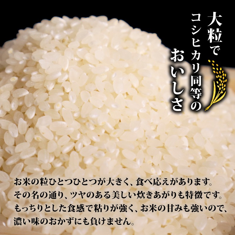 美しく豊富な水と、昼夜の寒暖差が大きい気象条件のもとで作られたコシヒカリ。みずみずしく艶のある粒、炊きあがりのふくよかな香り、そしてかむごとに広がる上品な甘み・・・。