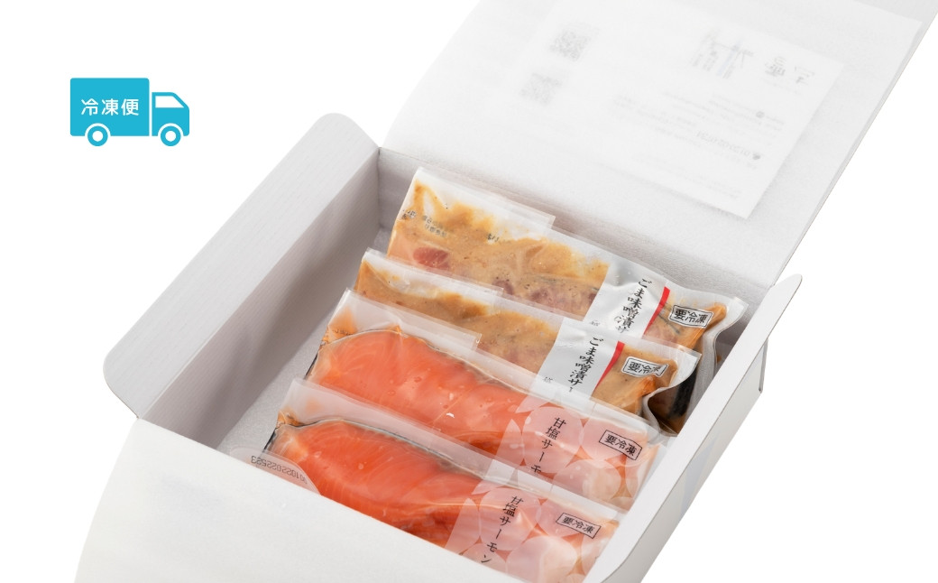 | 容量 | 甘塩サーモン4切れ ごま味噌漬3切れ |