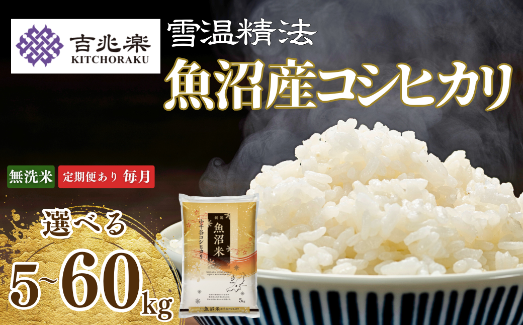 令和7年産新米 魚沼産コシヒカリ 無洗米 選べる数量 定期便 5kg 10kg 15kg 30kg 60kg 雪室貯蔵 吉兆楽 | 新潟県産 コシヒカリ お米 米 おこめ こめ コメ こしひかり 無洗米 新米 魚沼産 ブランド米 人気 おすすめ 産地直送【0038-0002SV00-01】