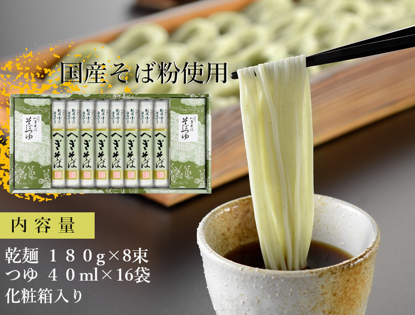 | 容量 | へぎそば乾麺180g×8束、つゆ40ml×16袋 |