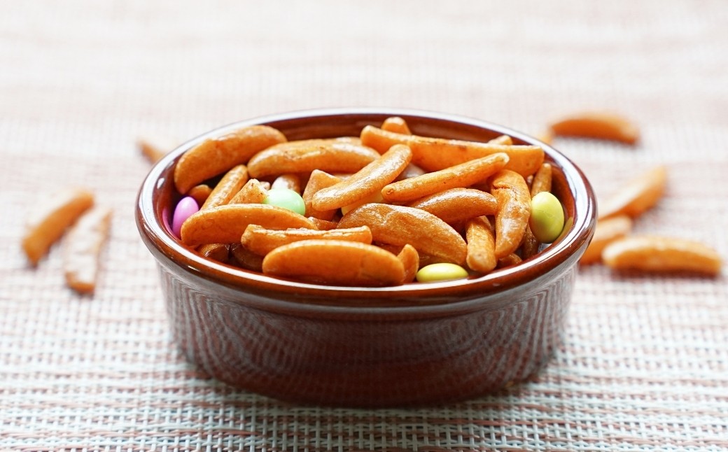 カリッと甘辛い味わいがたまらない柿の種にかわいいこんぺいとうをトッピング