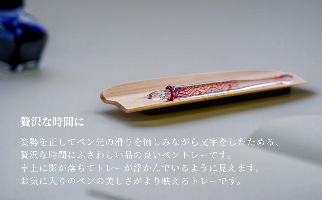姿勢を正してペン先の滑りを愉しみながら文字をしたためる、贅沢な時間にふさわしい品の良いペントレーです。