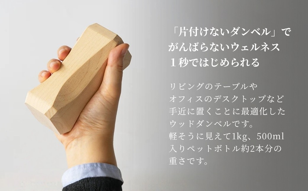 リビングのテーブルやオフィスのデスクトップなど手近に置くことに最適化したウッドダンベルです。