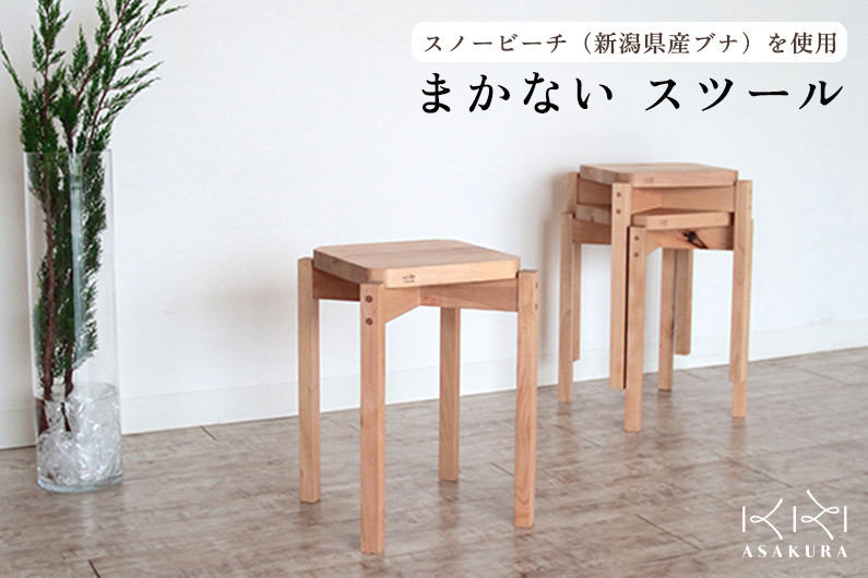大型家具の製造時に出る端材を活用。無垢材の良さを生かしたスツールに仕上げました。 スノービーチまかないスツール×1台《サイズ:W305×D305×H440mm》無垢材・天然木の木製スタッキングチェア 椅子 新潟県産ブナ材 加茂市 朝倉家具