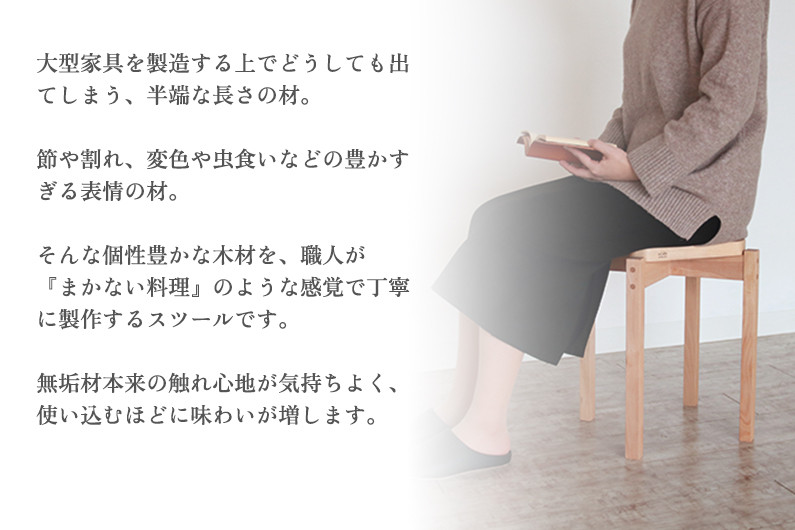 そんな個性豊かな木材を、職人が『まかない料理』のような感覚で丁寧に製作するスツールです。