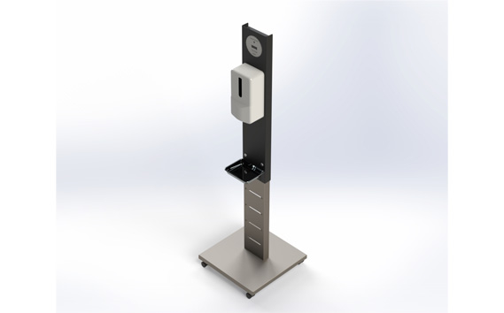 感染症対策に!反応が速く歩いて前を通るだけで検温・消毒可能 検温付消毒スタンドMS(ブラック)《本体サイズ:W390mm×D390mm×H940~1,340mm》非接触で検温と消毒液の供給が可能 加茂市皆川製作所
