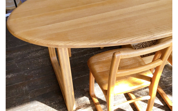 テーブルを楕円形にして丸みを持たせ、すっきりとした柔らかな曲線が特徴のダイニングテーブル。